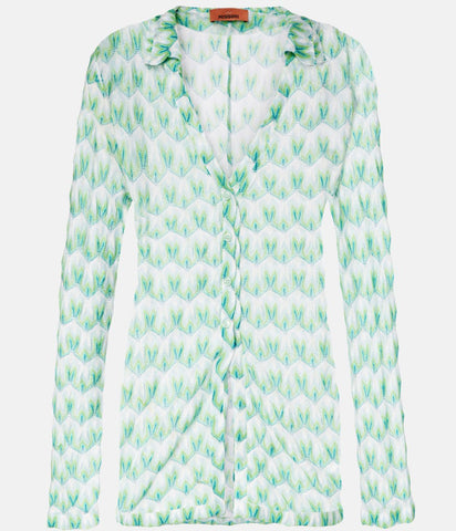Shirt in viscose with green and blue floral pattern