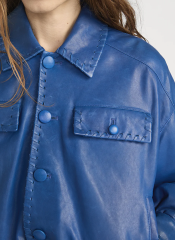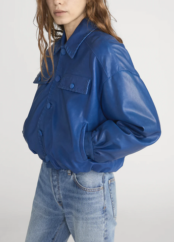 Leather bubble blue jacket