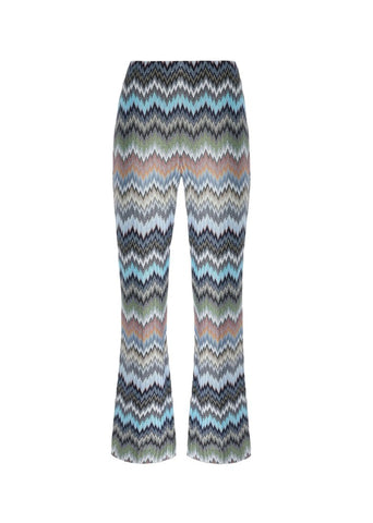 Snake-Pattern Chevron Viscose Flared Trousers