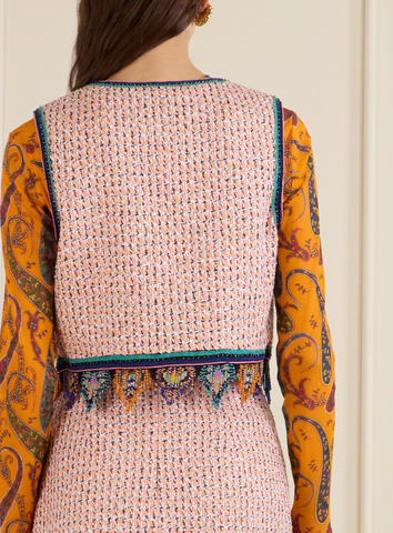Cropped Jacquard waistcoat with tweed effect