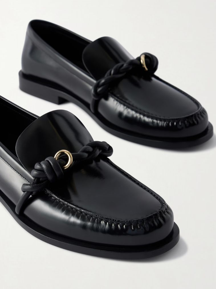 Leather loafer with hand-knotted detail and gold ring